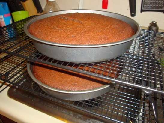 Step 10: Divide batter into the 2 cake pans, smooth tops, bake for about 45 minutes, or until a toothpick comes out clean from the center.